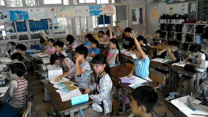 4年3組では,1学期の学習内容の確認をしていました。みんな,積極的に手を挙げています。