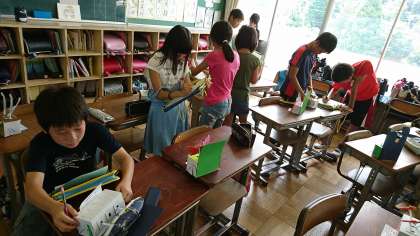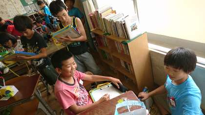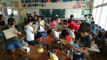 6年2組では,図工作品「くるくるクランク」の鑑賞をしています。友達の作品は,上手にできているかな?
