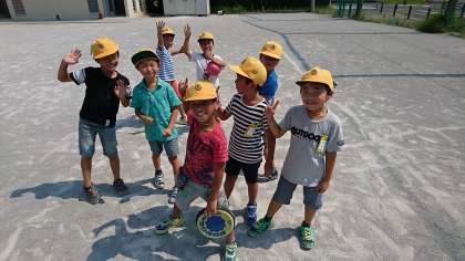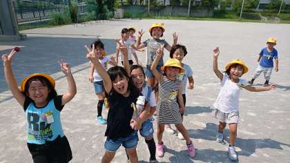 2年2組は運動場で元気いっぱいにお楽しみ会をしていました。みんなとても仲良しです!