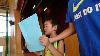 代表児童のスピーチです。1学期に頑張ったことについて発表しました。