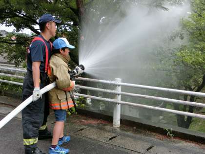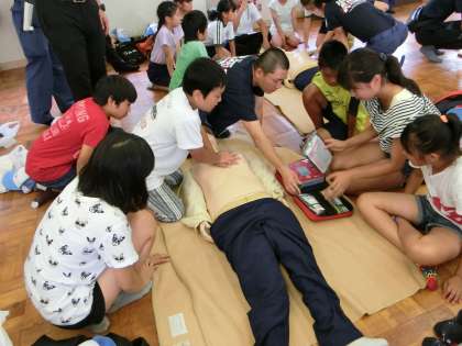 7/27 少年消防クラブ一日体験 公開日 2017/08/01 更新日 2017/08/01 児童会・委員会 少年消防クラブの一日入校体験に,代表の児童が参加してきました。心肺蘇生法や放水の体験などをしました。