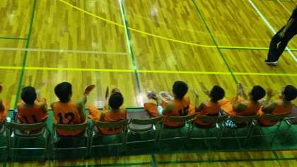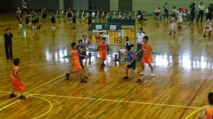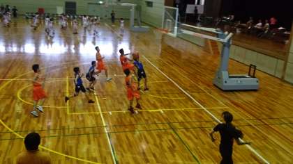 男子の一回戦はつつじが丘小です。前半を終えて16-9とリードしています!
