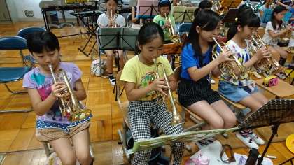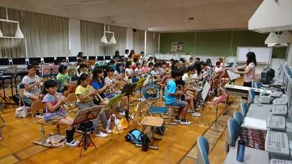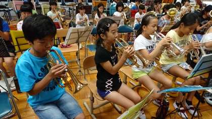 夏休み中の課外活動は,バスケットボール部とサッカー部だけではありません。金管バンド部も練習に励んでいます。