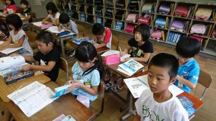 2年2組の算数の授業です。リットルやデシリットルなどの,「かさ」の学習に入りました。