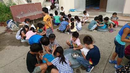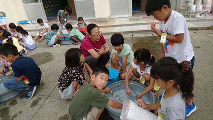 2年3組の算数の授業です。一リットルの量について実際に計りとって,感覚を確かめています。