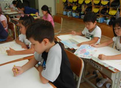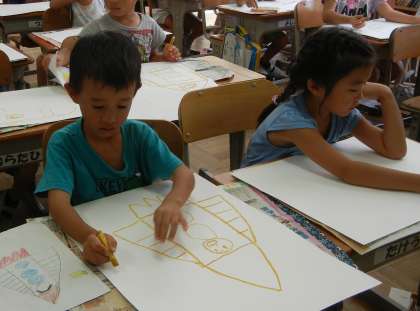 9/13 1の3図工「のってみたいないきたいな」 公開日 2017/09/13 更新日 2017/09/13 1年生 1年3組は、図工で「のってみたいないきたいな」をやってました。恐竜にのったり、ロケットにのったりしてどこへいくのでしょう。