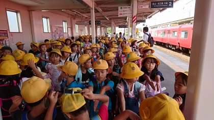 新舞子駅に到着です。みんなで頑張って歩きました。この後,電車とバスを乗り継ぎます。