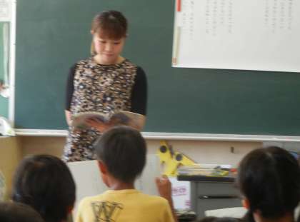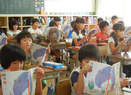 3年2組は国語の勉強です。金子みすゞの「わたしと小鳥と鈴と」の詩の学習です。まずは、みんなで読んだり、先生と読んだりしながら、詩を味わいました。
