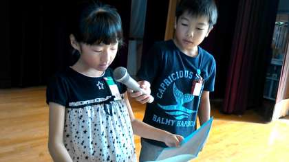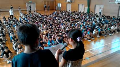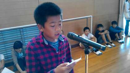 1年生の代表児童による作文発表がありました。また,環境委員から,学習発表会のスローガン募集の連絡がありました。