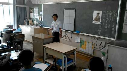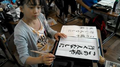 6年1組の書写の授業です。今日は松尾芭蕉の詩に挑戦です。難しい課題ですが,さすが6年生,上手に書いています。