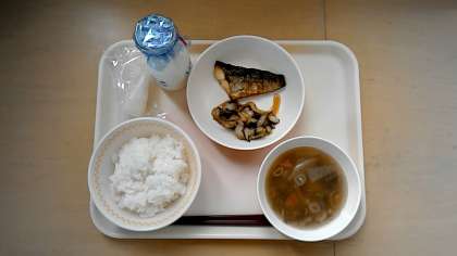 ごはん ぎゅうにゅう こんさいじる さばのしおやき はくさいのこんぶあえ つきみだんご