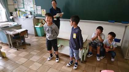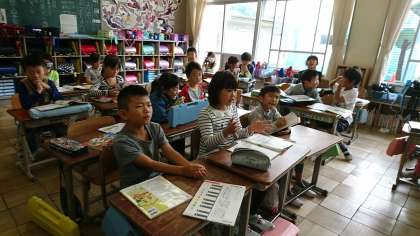 2年3組では歌のテストをしていました。振り付けもあって,とても楽しそうです。