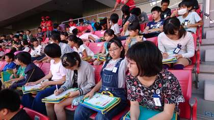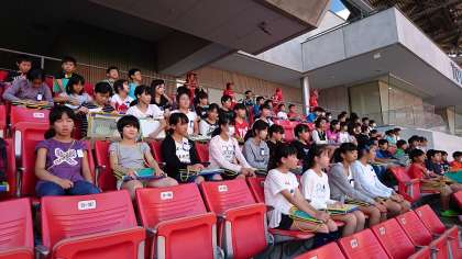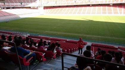 トヨタスタジアムの概要について説明を受けました。スタジアムの大きさに驚きです!