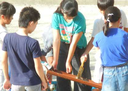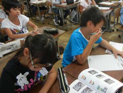 5時間目、3の2は社会で、今度見学をさせてもらう「オカトク工場」での質問を考えました。6の1は理科で、土の堆積についての勉強を外で行いました。