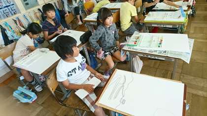 3年1組では,「モチモチの木」の感想画を描いていました。芸術の秋です…。