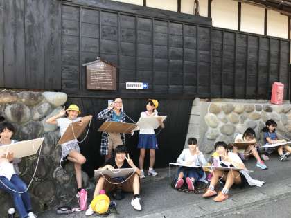 それぞれが気に入った場所を見つけて,下がきを始めました。