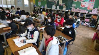 5年1組の朝の会です。インフルエンザの影響で3日ぶりの登校です。