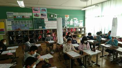 12/11 3年生算数 公開日 2017/12/11 更新日 2017/12/11 3年生 3年3組の算数です。テストが返却されたので,答えの確認をしています。教室には乾燥防止のために濡れタオルがかけられています。