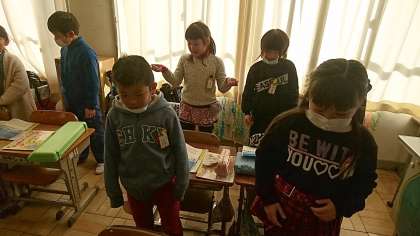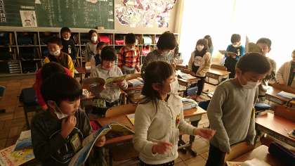 2年3組の音楽です。クリスマスが近いので「ジングルベル」を歌いました。とても楽しそうです。