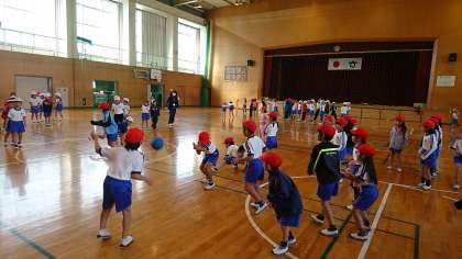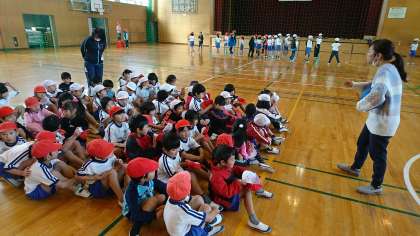 1年2組と3組で,ドッジボールをしました。どちらの学級も一生懸命です。