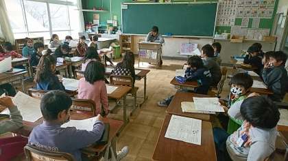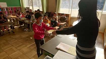 2学期最後の学活です。皆勤賞をもらったり,宿題の確認をしたりしました。