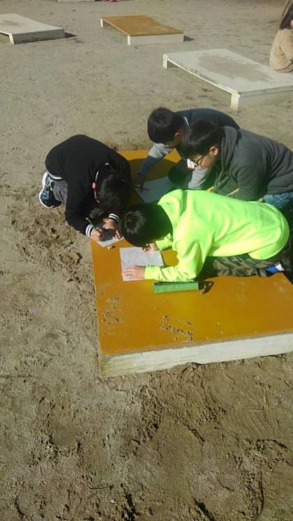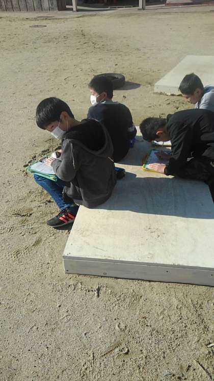 6年3組の理科です。月と太陽の位置関係について観察しました。