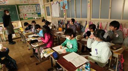 3年1組の社会です。おせち料理について調べ学習に取り組みました。