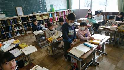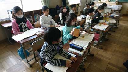 3年1組の国語です。説明文「ありの行列」の読み取りをしています。