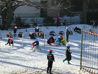 1/25 積もった雪に大喜び! 公開日 2018/01/25 更新日 2018/01/25 岡田っ子広場 久しぶりに降り積もった雪に、子どもたちは大はしゃぎ。雪合戦を楽しみましたよ。 今日は通勤に苦労した方も多かったと思います。各地で豪雪被害も出ています。心よりお見舞い申し上げます。 自然と共存し、温かい地域の愛情に支えられてのびのび育つ子どもたち。笑顔がいっぱいあふれますように…。