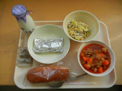 こめこパン ぎゅうにゅう ポークビーンズ ココアぎゅうにゅうのもと ペコロスのチーズむし ツナサラダ