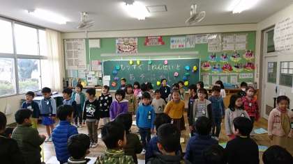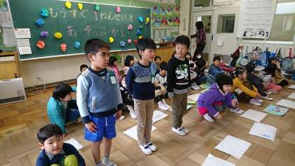 1年生の児童と,平成30年度の新入学児童の交流会です。1年生が歌を発表したり,一緒に遊んだりしました。