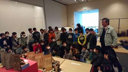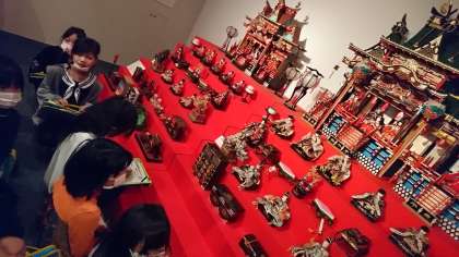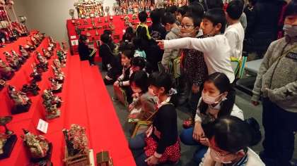ひな祭り展の見学をしました。女の子たちは目を輝かせて見ています。