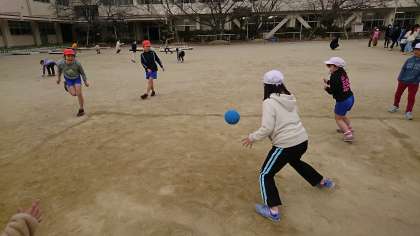 2年3組の体育です。ドッジボールをみんなで頑張りました。