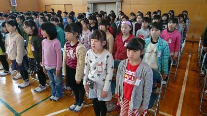 今日は,4〜6年生合同で,卒業式の通し練習をしました。