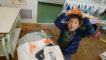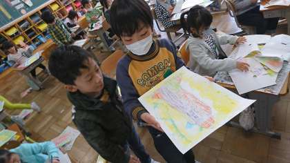 1年2組の図工です。こすり出しで作品づくりをしました。