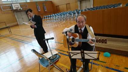 教頭先生と,教務主任の田島先生から,6年生へ歌のプレゼントがありました。