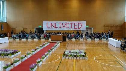 在校生の入場が終わりました。間もなく式が始まります。