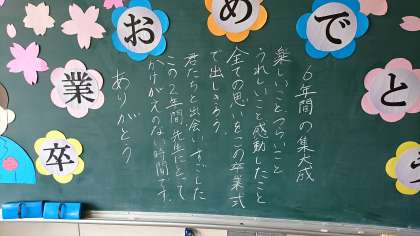 6年生の教室には,担任の先生からのメッセージが残されていました…。
