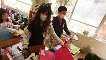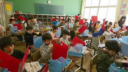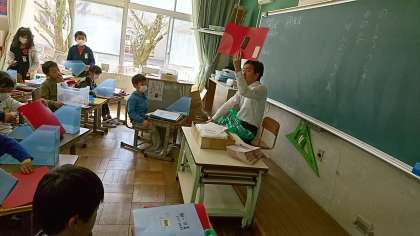 2年1組では,3年生の教室へのお引っ越しの準備をしていました。