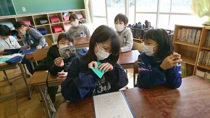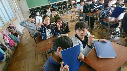 5年3組の学活です。通知表が配られました。結果が気になります…。