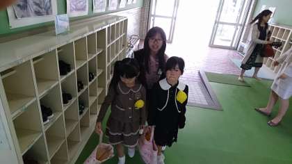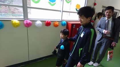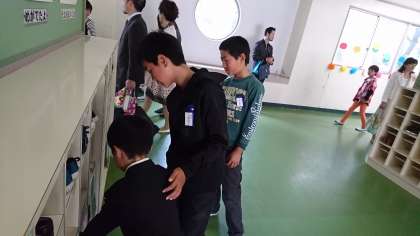 6年生の児童が,一生懸命に新入生を案内しています。