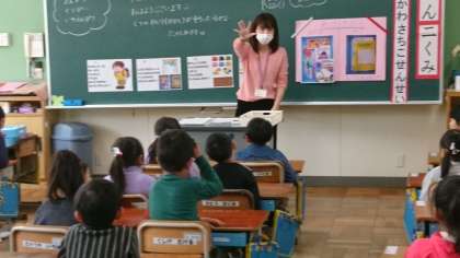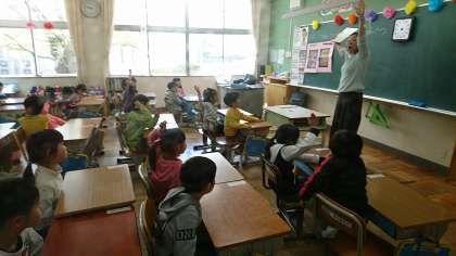 1年生は,号令のかけ方や手の上げ方,学校生活の時間などについて学んでいました。