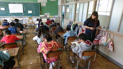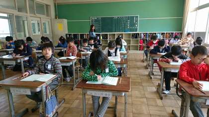4年生も知能テストです。先生の説明を真剣に聞いて問題を解いています。