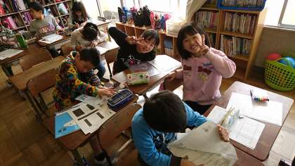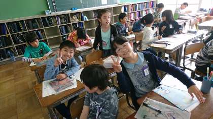 係活動の写真を撮ったり,配付物に名前を書いたり,忙しそうでした。