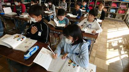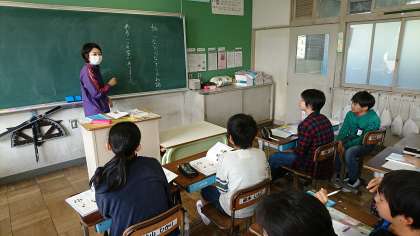 6年3組の国語です。「つないで つないで 一つのお話」の学習です。