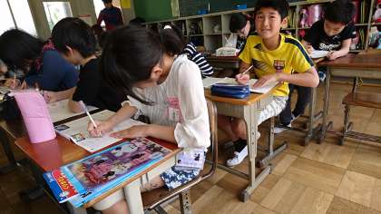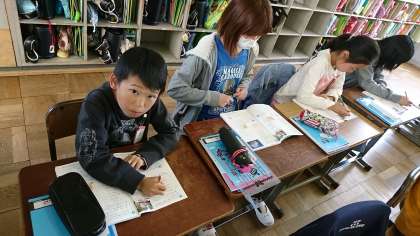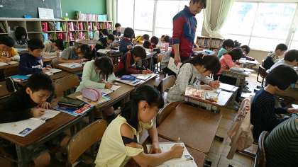 5年1組の算数です。10倍,100倍などをしたときの小数点の位置について学んでいます。