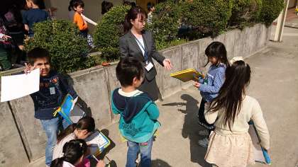 2年3組の生活科です。植物の観察をしています。