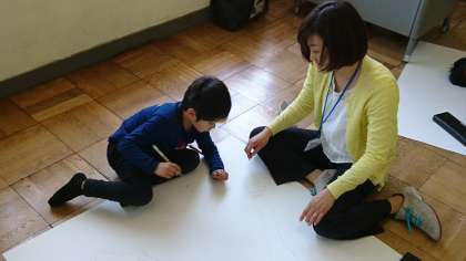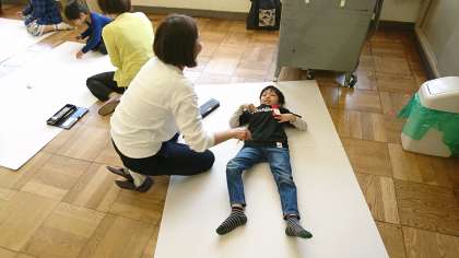 ひまわり学級では,「自分と同じ大きさのぼくをつくろう」を頑張りました。