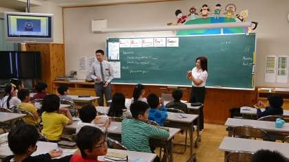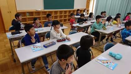 4年1組の外国語活動です。英語での自己紹介の仕方を学びました。