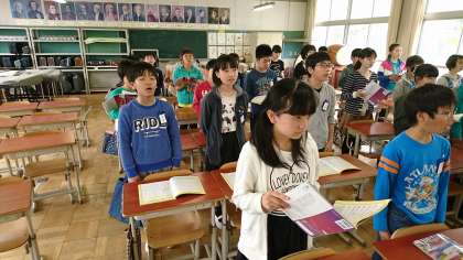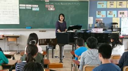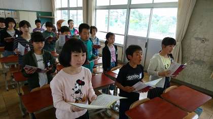 6年1組の音楽です。歌「笑顔でワ・ハ・ハ」の練習をしました。